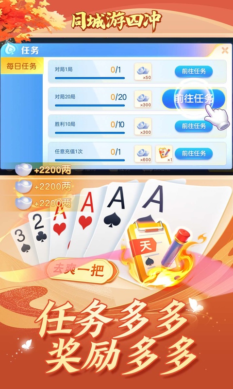 六冲扑克牌凭借其丰富的游戏内容、创新竞技模式和社交互动功能,吸引了大量棋牌爱好者的加入。平台的高质量游戏体验、安全可靠的游戏环境和丰富的奖励活动,让玩家在游戏中获得了极大的满足感和乐趣。无论你是棋牌新手还是资深玩家,都能在这里找到适合自己的游戏和竞技模式。